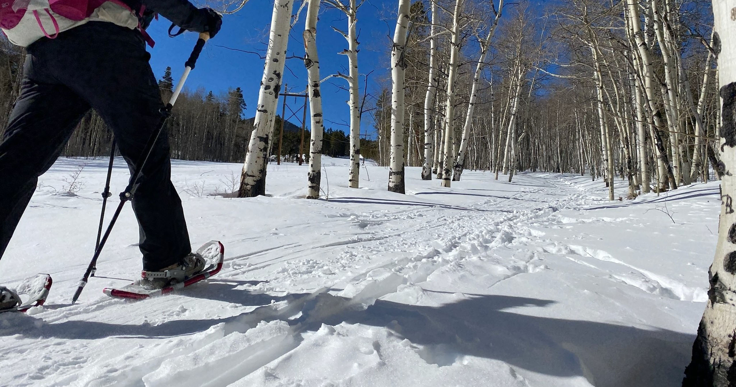 9:15 AM — Begin snowshoe hike through forested trails