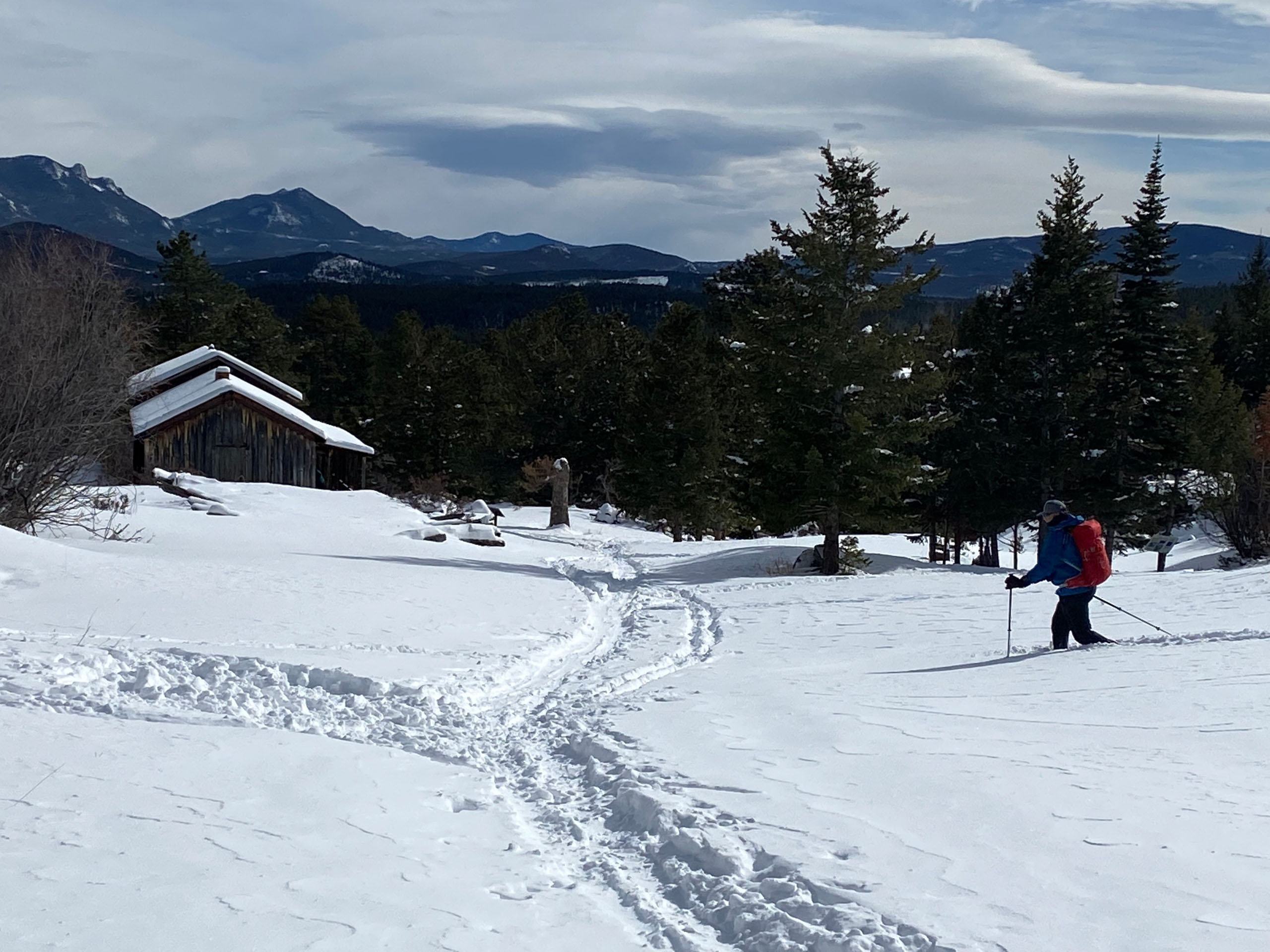 Snowshoe through pine forests, frozen creeks, and alpine meadows surrounded by Rocky Mountain views.