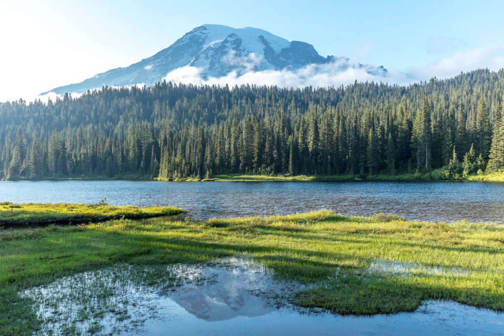 Capture photos at Christine and Narada Falls, Reflection Lake, and other breathtaking viewpoints as mist, sunlight, and forest meet.